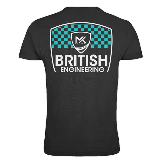 MK British Engineering T-Shirt Black Turquoise Print